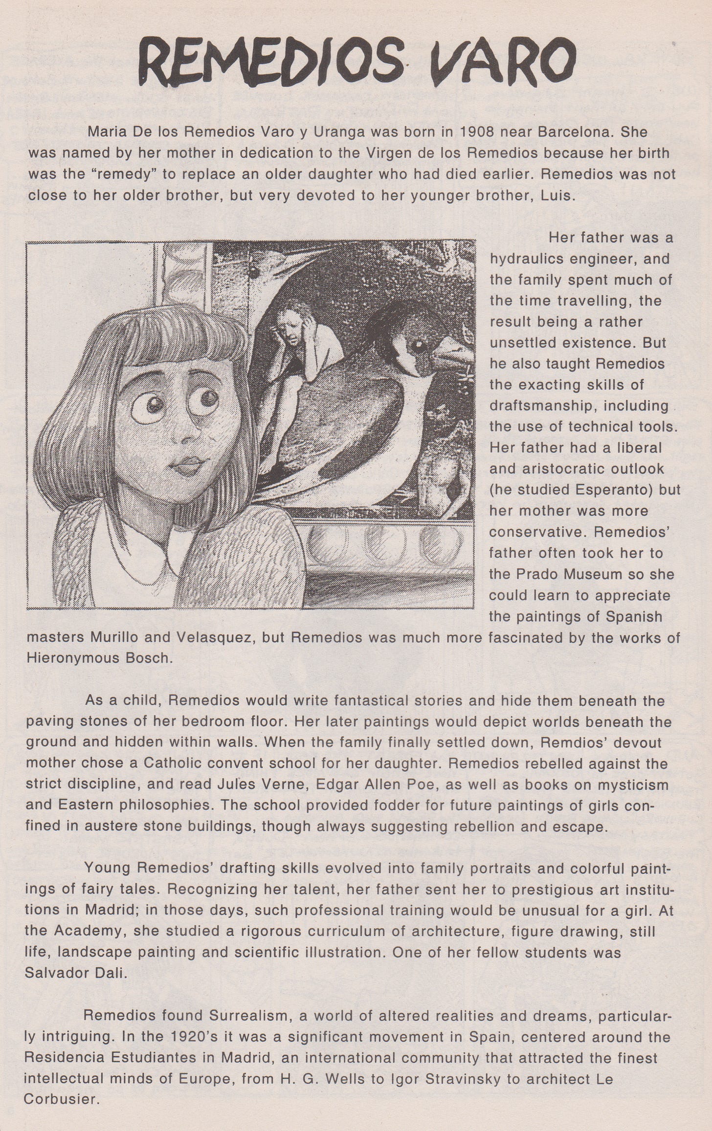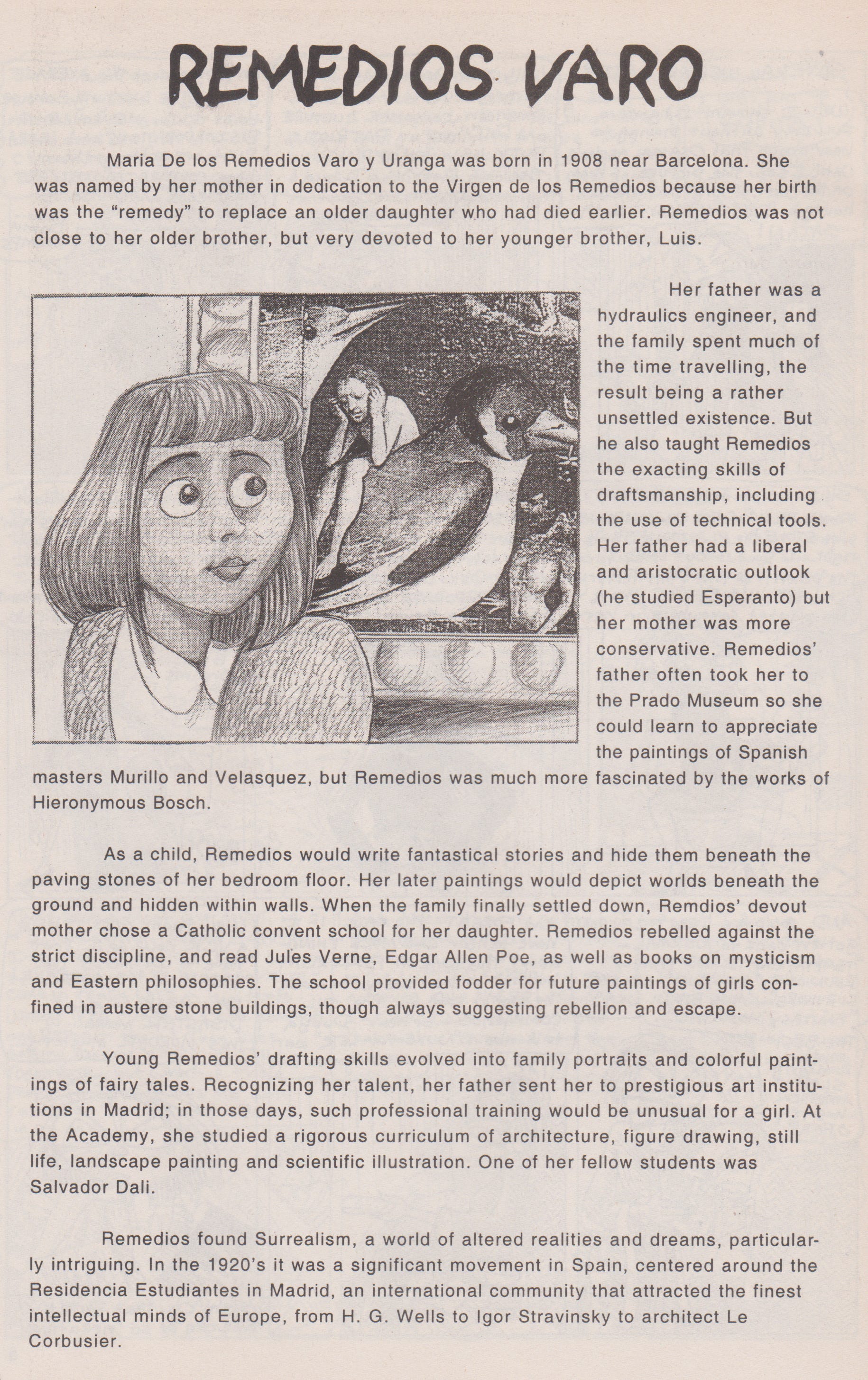 Next, we have a 7-page essay about the life of the Catalan-Mexican painter Remedios Varo. While it may seem like a random piece to include in this comic book, I like it when Gregory decides to just write about a subject she’s passionate about. Since she didn’t want to run into any copyright complications, she uses her interpretation of Varo’s paintings which are a delight to gaze at.