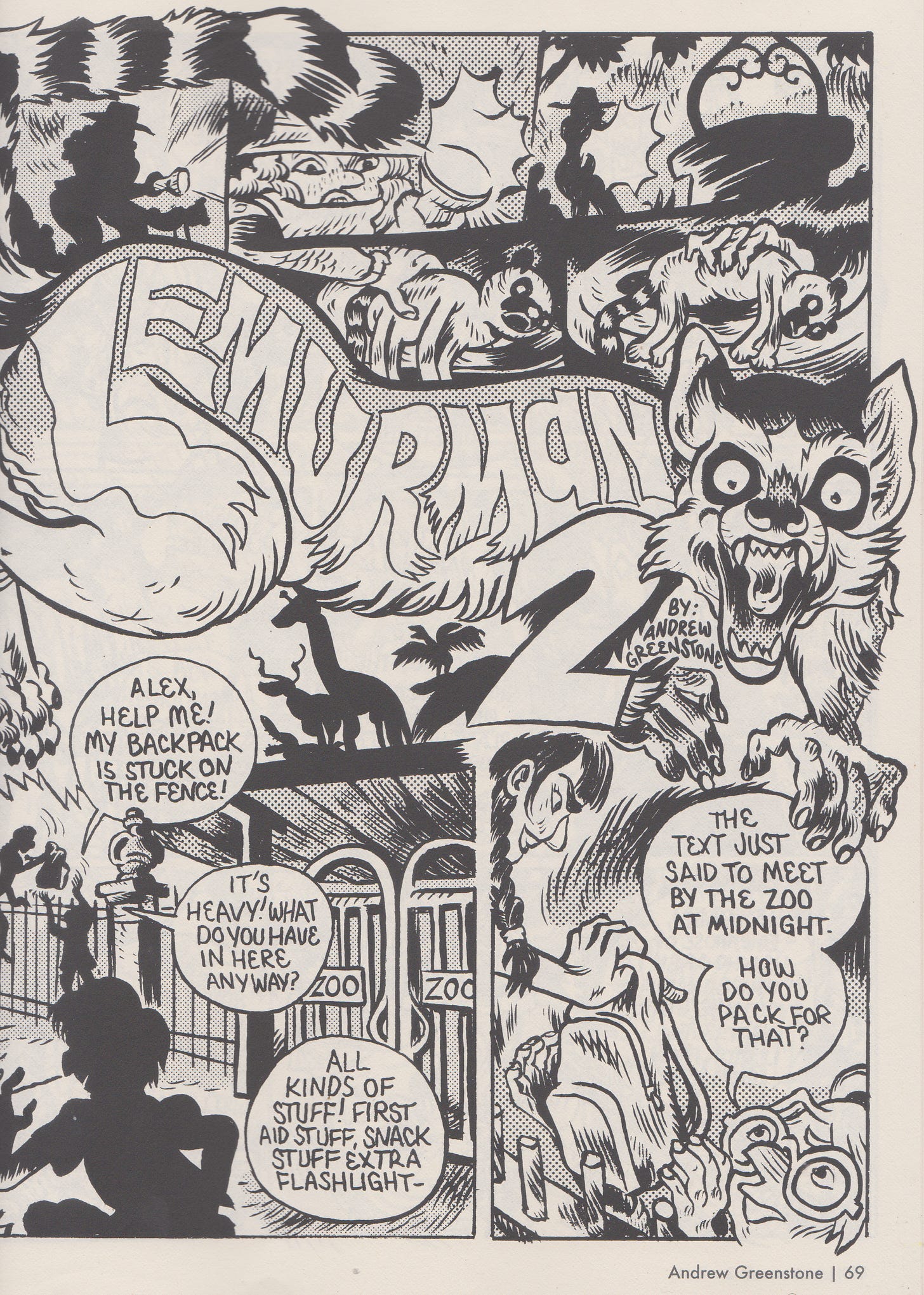 Lemurman 2 by Andrew Greenstone — I’m quite fond of Greenstone’s contributions to The Nib (2013-2022 RIP) making comics primarily themed around urban legends. His meandering writing style in combination with grossly exaggerated and overwhelmingly packed illustrations normally weave together in a miraculously seamless way that fits with the recurring themes present. That said, I did not find this to be the strongest example of Greenstone’s craft. While I tend to favor black-and-white’s ability to convey the rough and rowdy details, his comics are some of the few where I think color makes the visuals more discernable. Story-wise, even though it is thematically consistent with Greenstone’s usual fare, it’s not nearly as enjoyable to read within a purely fictional context since much of his draw for me is seeing real people obsess over cryptozoology.