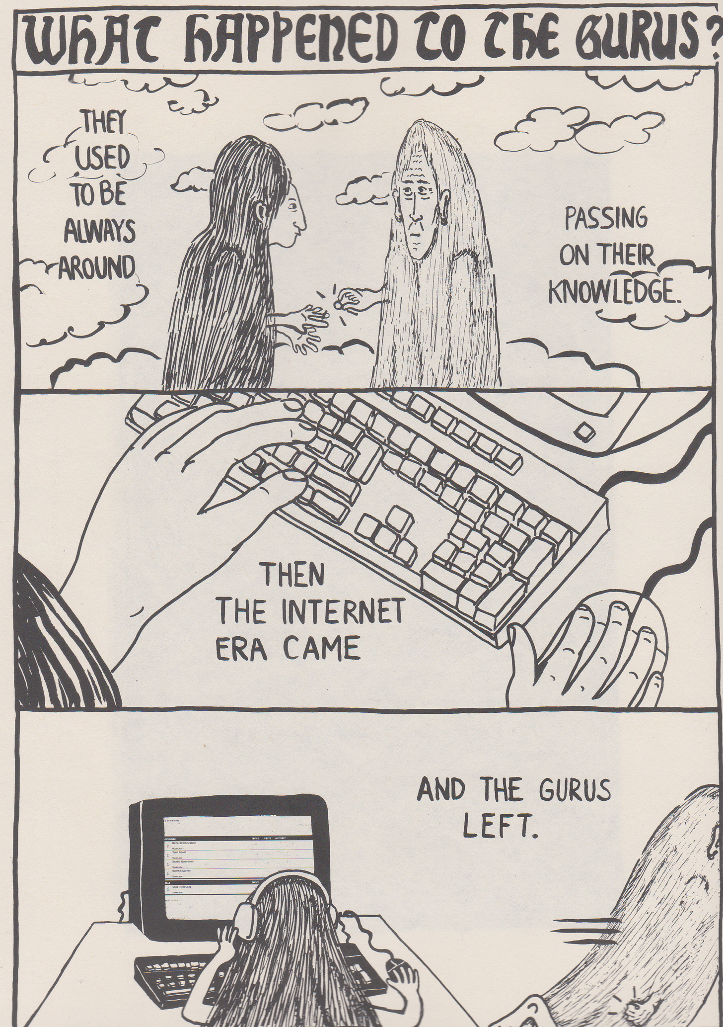 What Happened to the Gurus? by Ana Pando — A short but very relevant two-pager posing the titular question of what happened to our gurus after the internet. These gurus may not literally be the hairy wise men depicted on the page, but they come in the form of community figures like our abandoned wise elders.