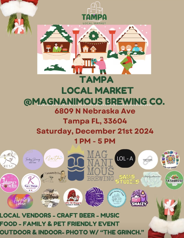 This afternoon, I’m vending at Tampa Local Market’s Grinch Market at Magnanimous Brewing Co. from 1-5 PM selling comics, stickers, and prints!