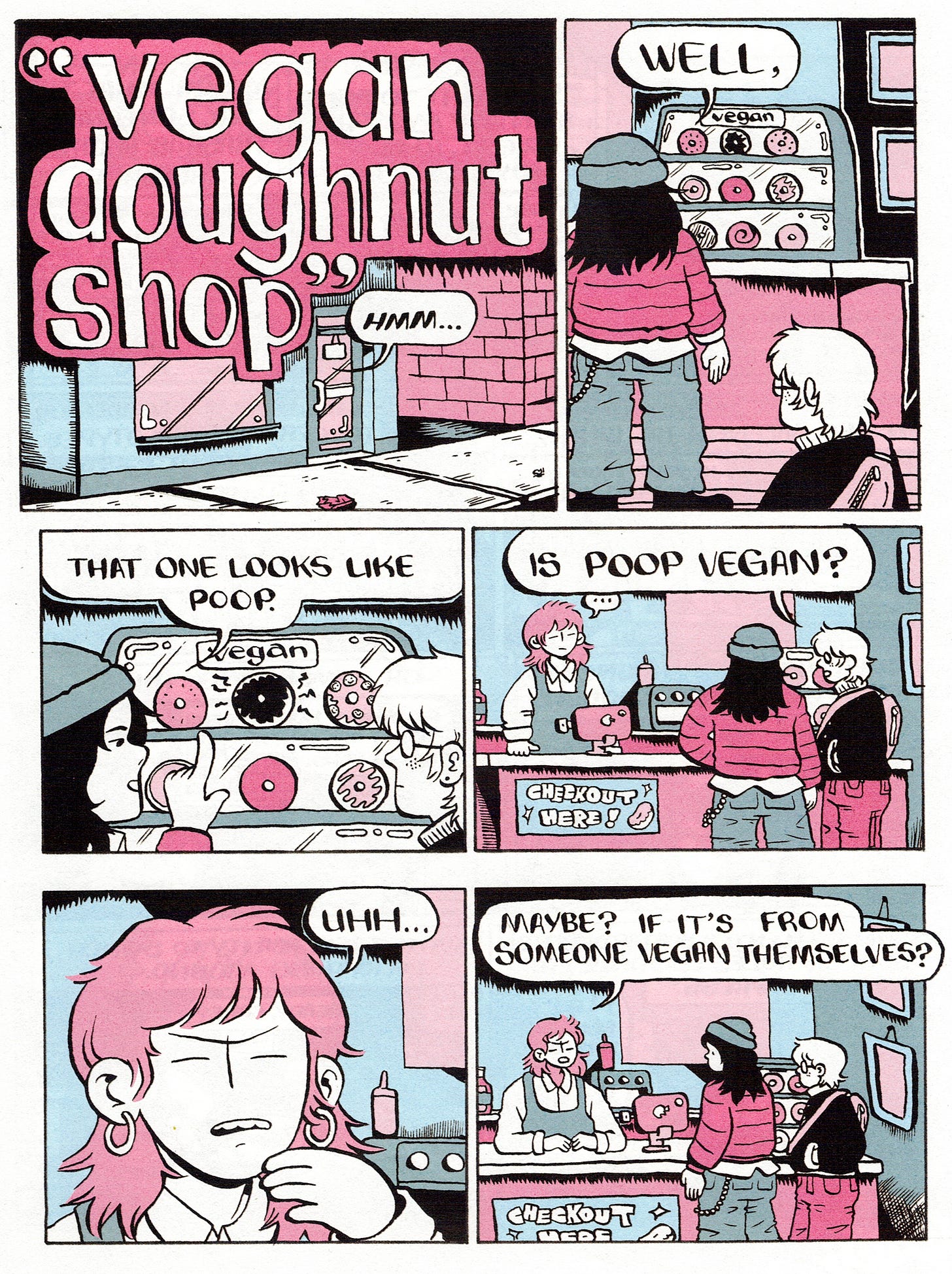 Caroline Cash keeps pumping hit after hit with every PeePee PooPoo issue that comes out, and this is no exception. For the unacquainted, Cash’s anthology series uses random issue numbers like #420 or #80085, so chronology has no relevance here. Not unlike, with the previous installments, you get a good mix of funny autobio shit like everyone recognizing her when she moves to Philly as well as just random and observational shit that could happen such as a conversation about a doughnut looking like poop.