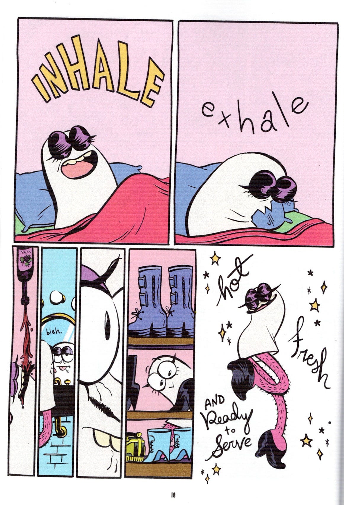 I suppose a more appropriate title would be Wine Ghost in Hell since that’s where the entire graphic novel takes place. Either way, we follow the titular buoyant protagonist who’s helping her old bestie Sebastian find an apartment. Wine Ghost runs into conflict as antics and hard feelings ensue that challenge her relationships and ways of dealing with them. There’s plenty of good vibes, humor, heart, and bizarre imagery to go around! I went into more depth about the book’s visual elements in a review I wrote over a year ago when I was given this as an advanced reader copy.