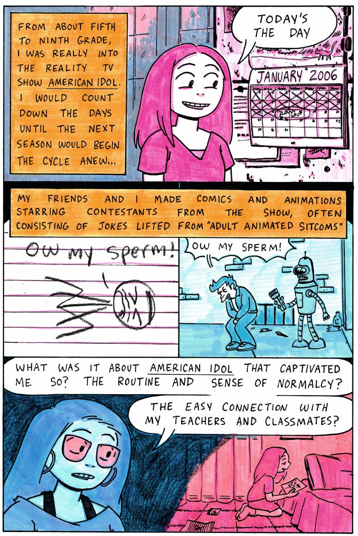 By comparison, #7 might not seem that remarkable as it leans fully into the series’s mundanity without the eerieness, but as someone who gravitates toward a good slice-of-life story, I loved how Stang put her realism writing skills on full display. If you grew up and went to school in a small town (I can’t vouch for myself. I was a mostly homeschooled big-city kid), you’ll probably get a pang of nostalgia from reading the Star Valley middle-schoolers’ day-to-day happenings and gripes alongside Audra’s autobio comics about her teen years in Greensboro, NC. The American Idol one was a real highlight.