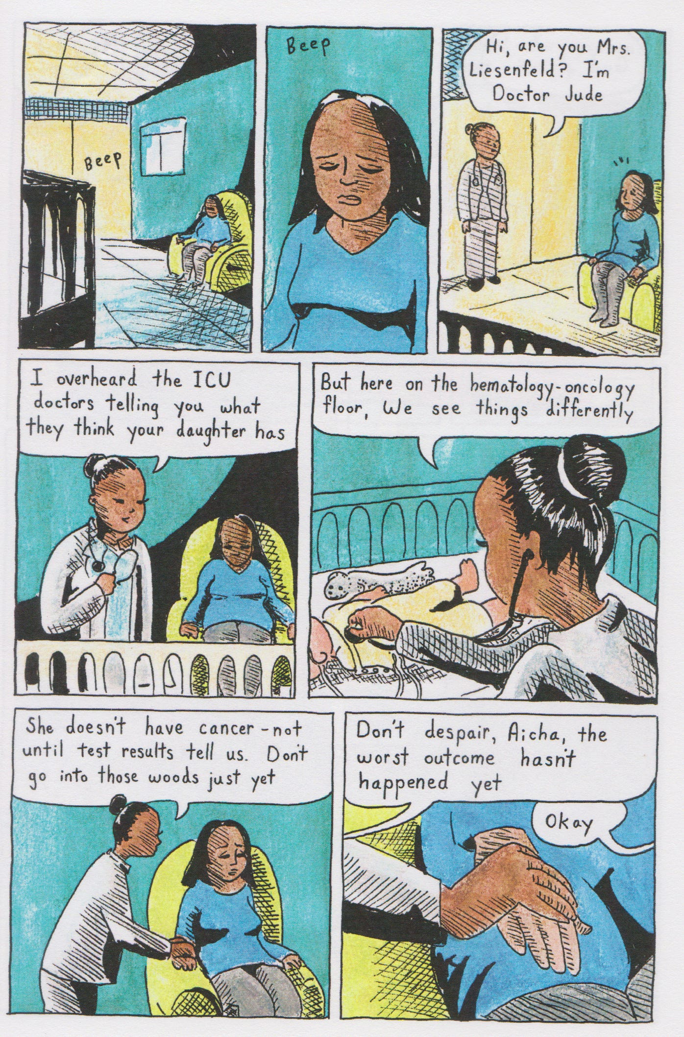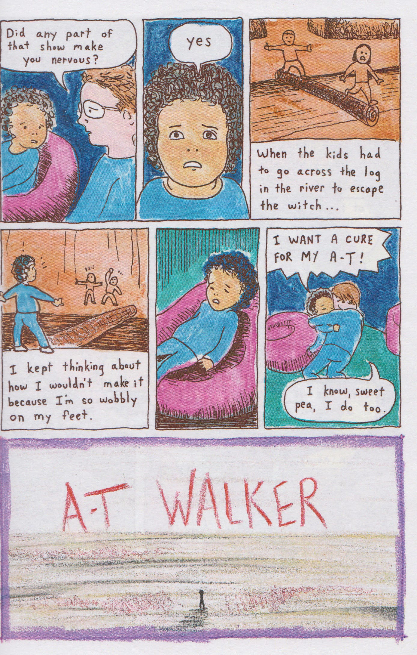 Five years ago, Micah’s wife Aisha gave birth to their daughter Eva, who was diagnosed with ataxia-telangiectasia (AT or Louis-Bar Syndrome), an incurable neurogenerative disease. This harrowing and informative mini-comic series dives into the couple discovering and processing said diagnosis. I go into more detail about it in my review reviews of #1 and #2.