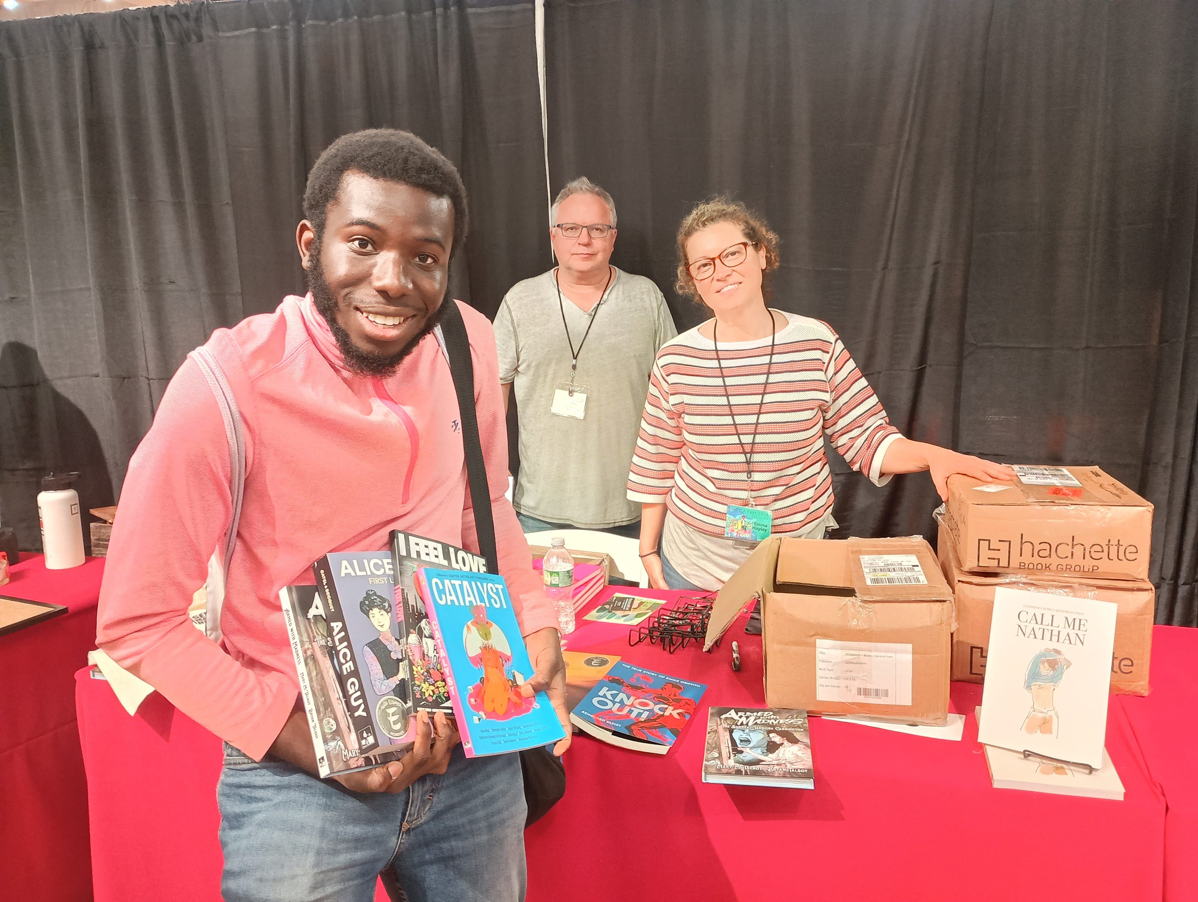 To put the cherry on top, there was the Mocca Arts Festival Awards of Excellence later in the afternoon which, unlike most comic awards, is made to financially reward cartoonists tabling at the festival. The ceremony procedure is pretty unorthodox, to say the least. Instead of holding it after the show in some conference room, they just announce it through the intercom while an event volunteer brings balloons and other celebratory paraphernalia to the artist’s booth. Since the award is not treated like a separate occasion, the average attendee will likely miss the announcement amongst the crowd. For the artist, however, I imagine it’s a cool surprise to have someone walk up to your table saying you won something, almost like those mythical lottery winners who are greeted at their door by a person holding a giant paycheck.