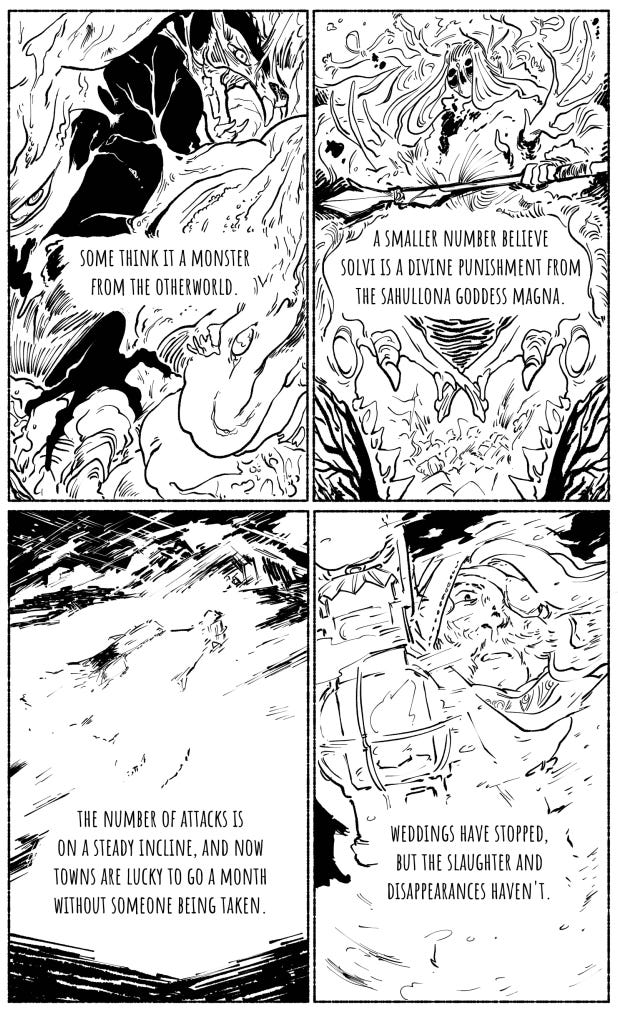 Note: The completed book will be in grayscale, but the advance reader copy I received is in ink only, so any thoughts and opinions regarding the art will reflect that.