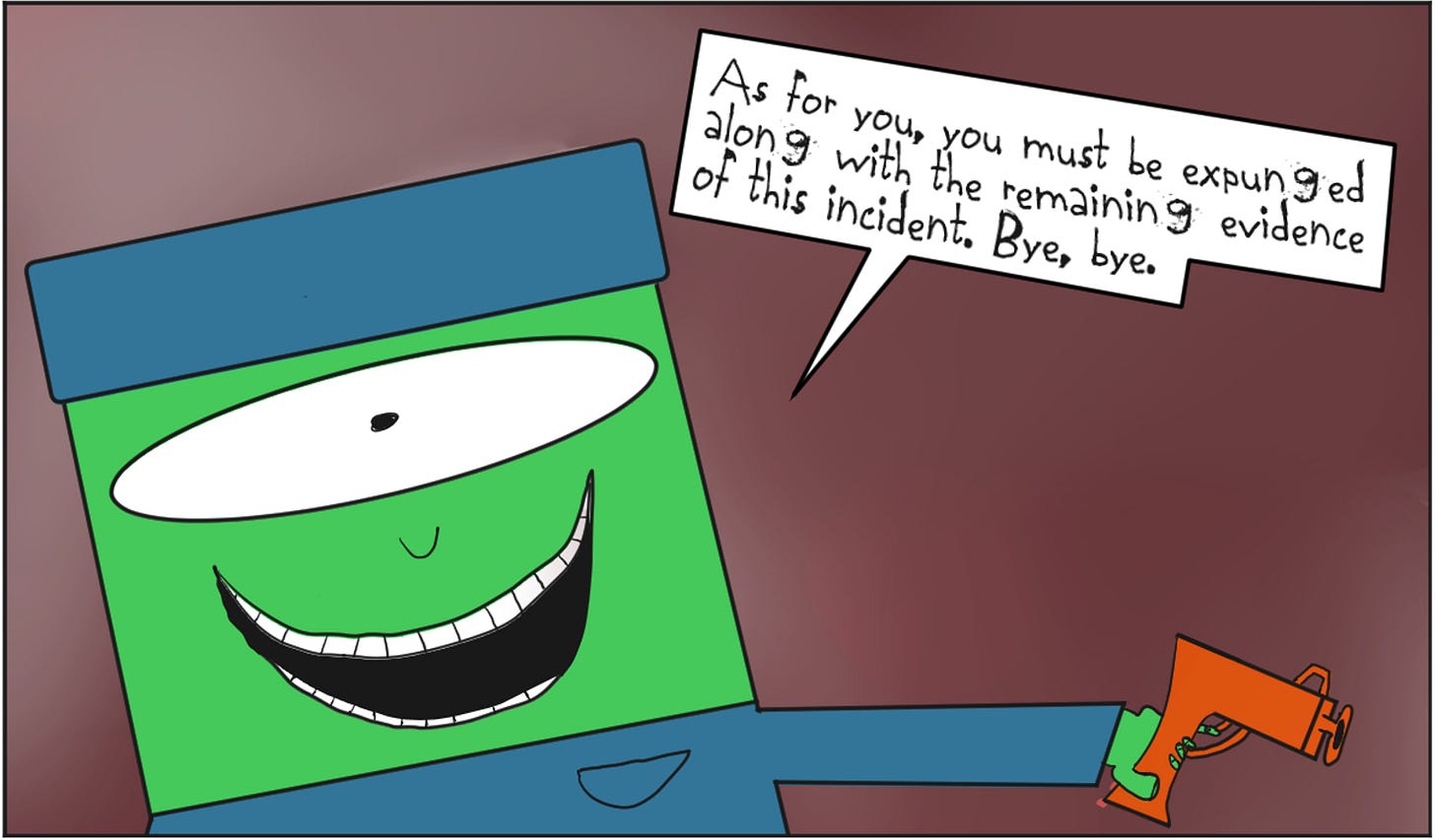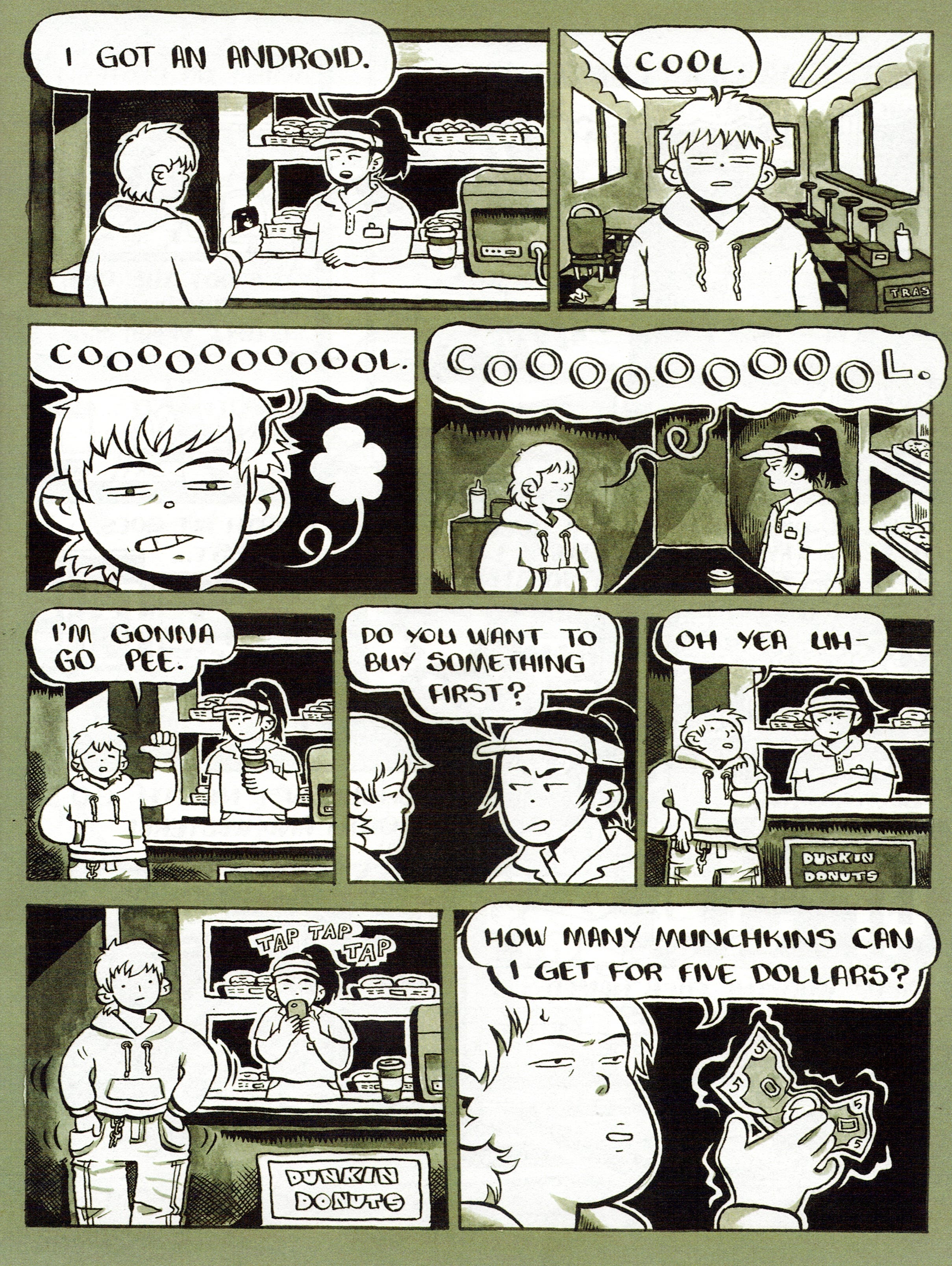 Stoned Again — With a title like that, you know green will be the presiding hue in this trip of a tale of Cash being lost and, obviously, stoned in the middle of the night. To really hone in on that lost and tripped-out feeling, the pacing meanders as we follow her jumping from one predicament to another, to the story’s benefit. My favorite part is when she enters a Dunkin Donuts to charge her phone and says cool for three panels, each time with an elongated cadence that’s represented graphically through the speech bubbles and art style.