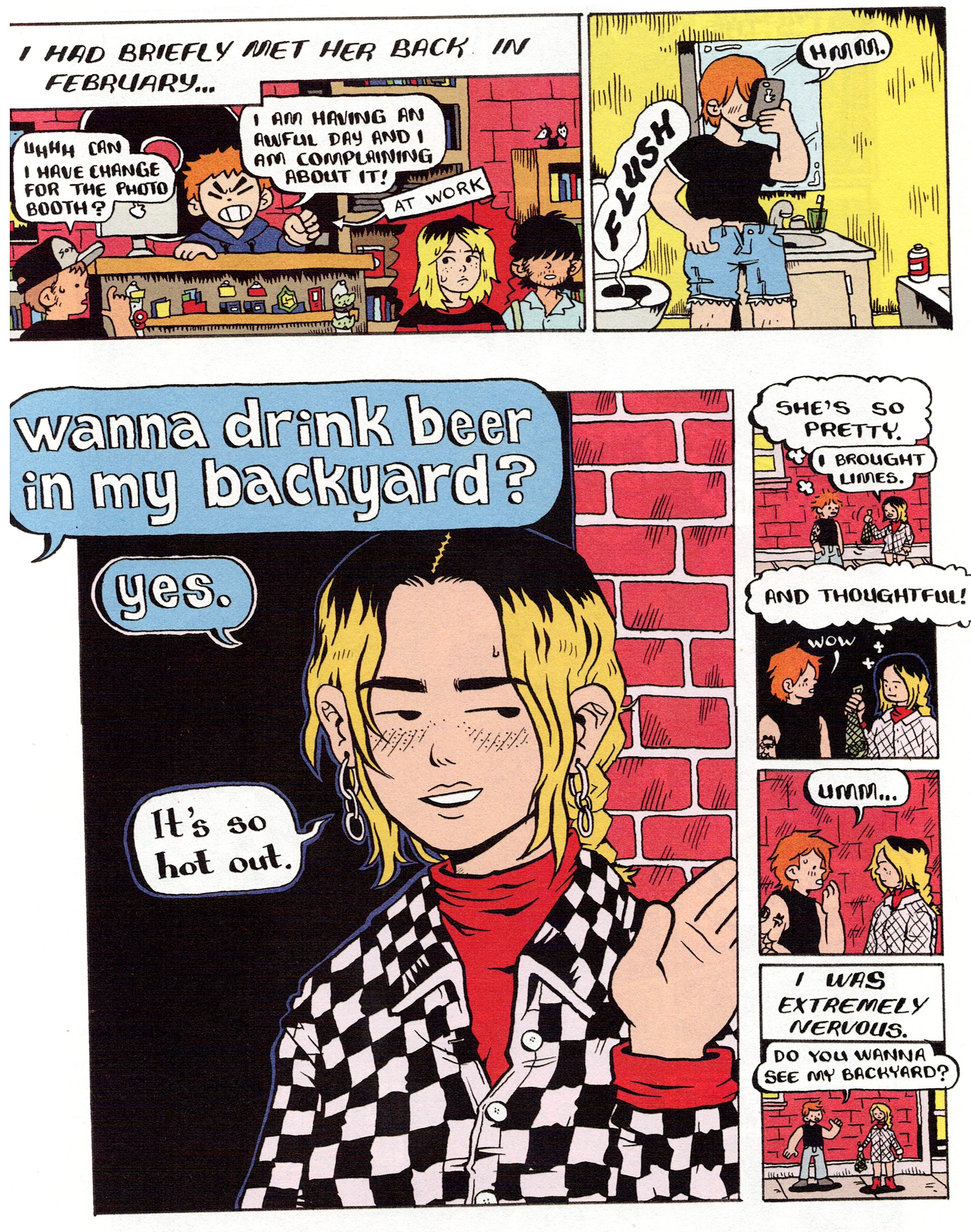 A Tale of Who Will Hit on Ya’ at Tattooed Mom — Drawn fittingly with a red color scheme, this is another one of those single-page comics where Cash lists things, this time the archetypes she encounters at the titular bar she frequents. I can’t say I’ve ever seen these types personally, but if I’m ever in Philly, I might just go to that bar to see for myself.