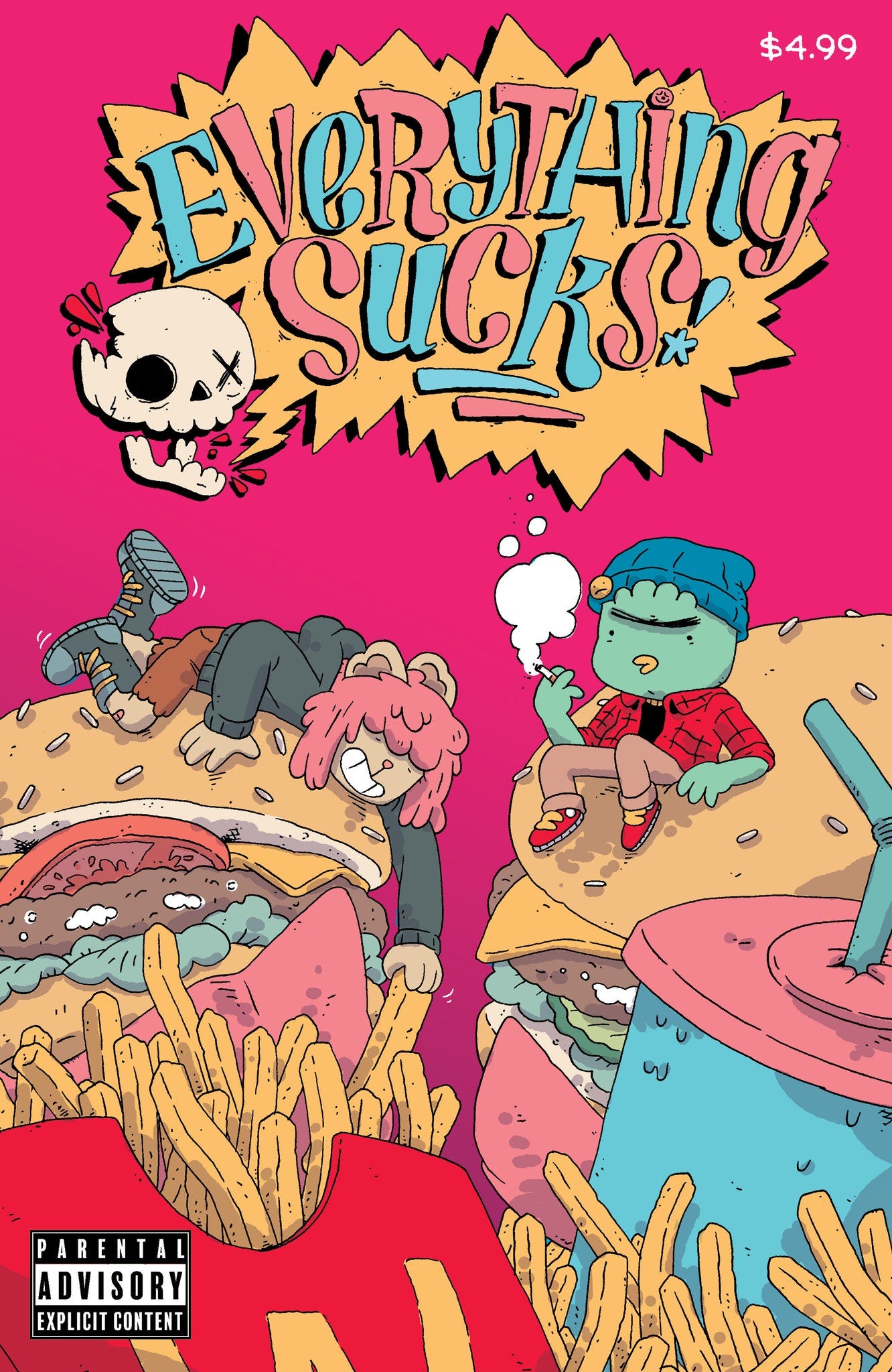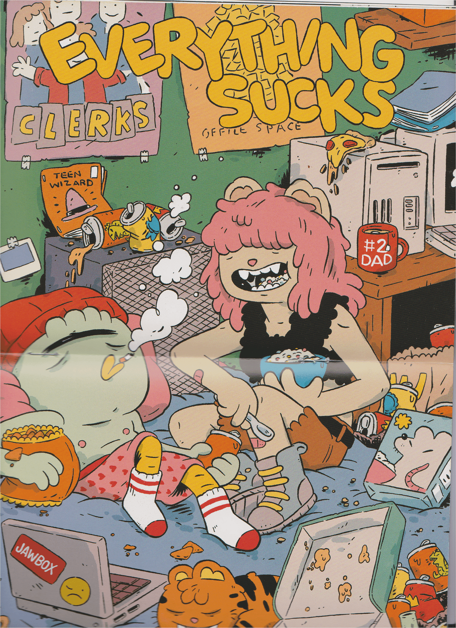 In the first installment of the Sammy the Critic revival, I’m reviewing the Everything Sucks comic book series by Michael Sweater. With three issues and counting, this is easily my favorite ongoing comic book and its simple premise plays into it. Everything Sucks follows the episodic exploits of the slacker roommate duo Calla and Noah whose day-to-day dilemmas always manage to comically escalate whether it be from a simple task like grabbing burgers from the local fast food eatery or getting locked out of the house by cats.